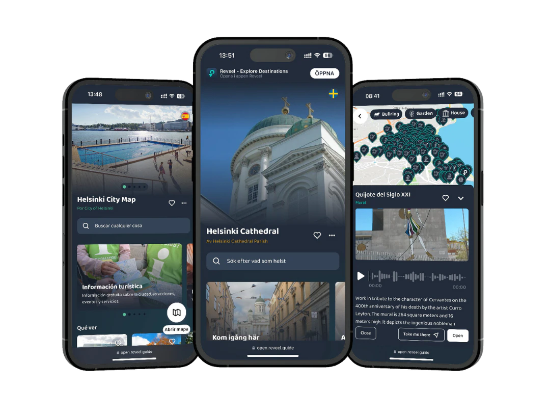 Reveel’s success is also built on strong partnerships with industry leaders. We work closely with destinations, tourism boards, and cultural organizations to develop tailored digital guidebooks that resonate with their unique offerings. Our collaborations with cities like Estepona, Helsinki, and UNESCO sites demonstrate our ability to bring smart tourism solutions to destinations of all sizes and types.